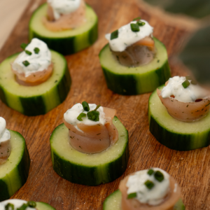 Salmon Gravlax on English Cucumber Boat